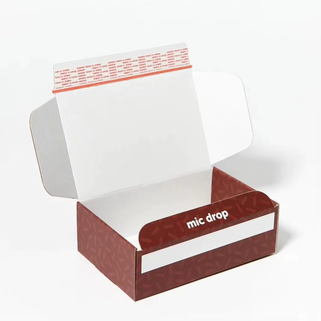 Картонная коробка для почтовых отправлений с индивидуальным логотипом, изготовленная из экологически чистых материалов, с отрывной полосой.